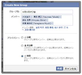 連載第2回で「イベント機能」「メッセージ機能」「チャット機能」について書きました。「つながりたい」「共感したい」という気持ちを基にしたつながりを深めるためには、共感が持てる人だけを集めたグループを作るのが早道です。試しに第2回で開催したオフ会の参加メンバーだけの「秘密のグループ」(目的別管理グループ)を作ります。