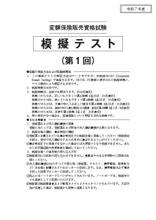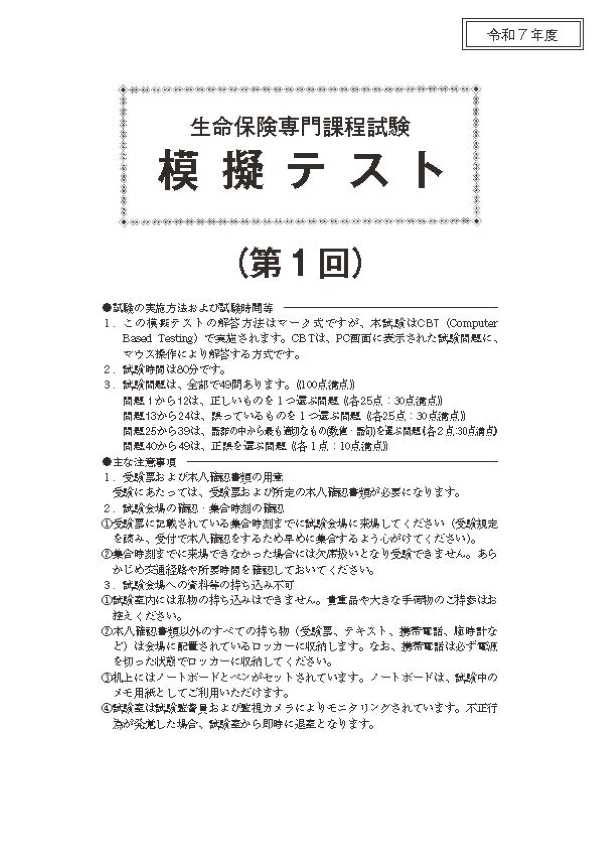 年度途中で生命保険協会等による生命保険協会発刊テキストの改訂、CBT試験の仕様変更等があった場合は、ご案内教材の種類・内容・価格を変更させていただく場合があります。