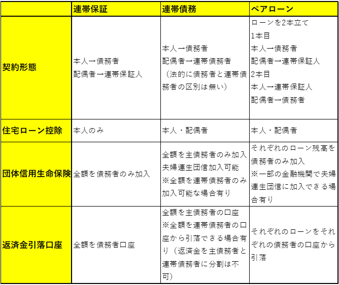 住宅ローン契約形態(連帯保証・連帯債務・ペアローン)
